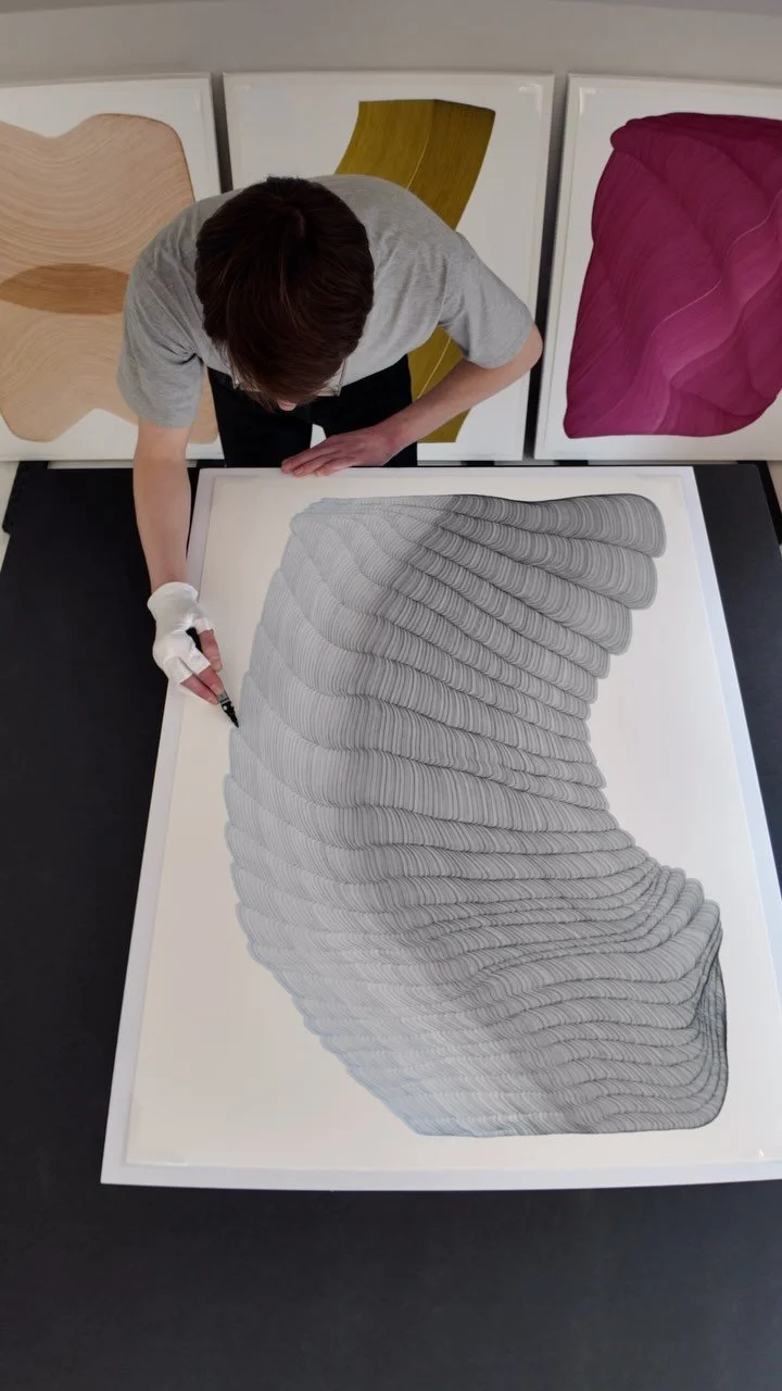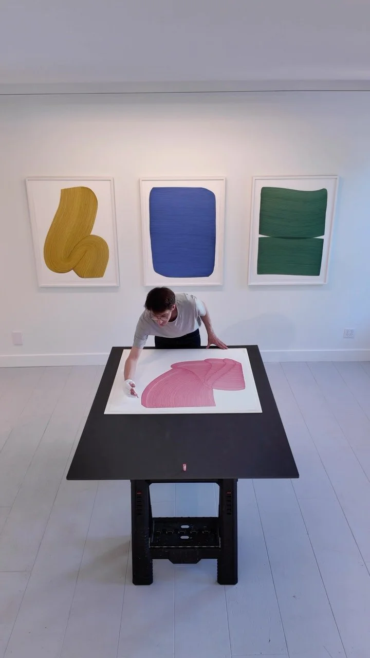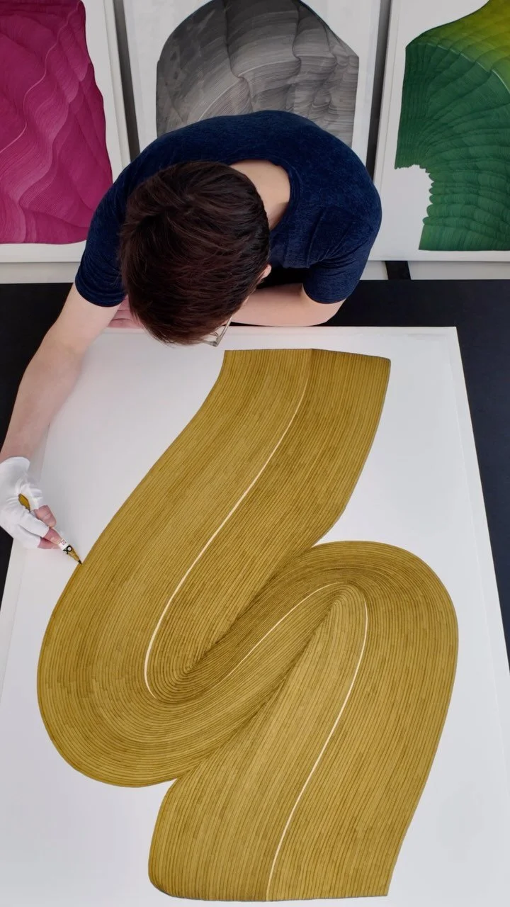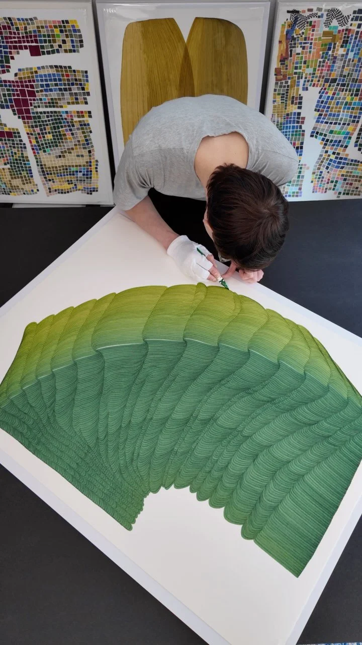 Dana Piazza is a visual artist who creates abstract drawings and paintings on paper, panel, and canvas. Piazza’s practice emphasizes and expands upon a single origin mark coupled with a set of self-imposed rules that are the scaffolding for an extraordinarily comprehensive and varied body of work. The meticulous forms that Piazza assembles on his flat surfaces depict the illusion of depth and movement; they seem voluminous, carrying significant visual weight. His systemic inclinations toward non-representational abstraction focus on form, color, the tools of creation, and the artist’s hand.